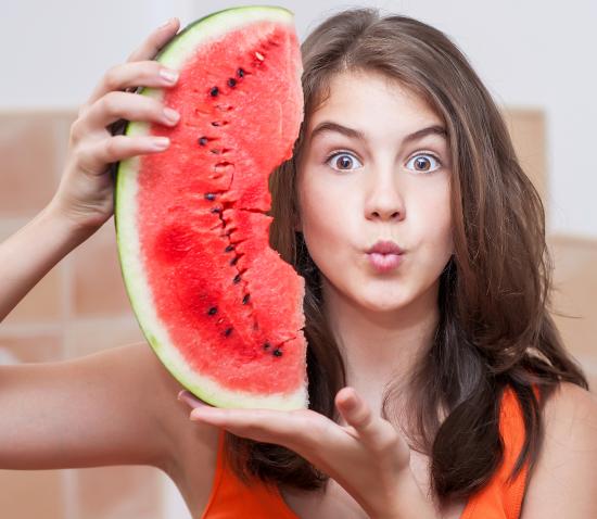 » Wallpaper The girl is holding a watermelon cap
