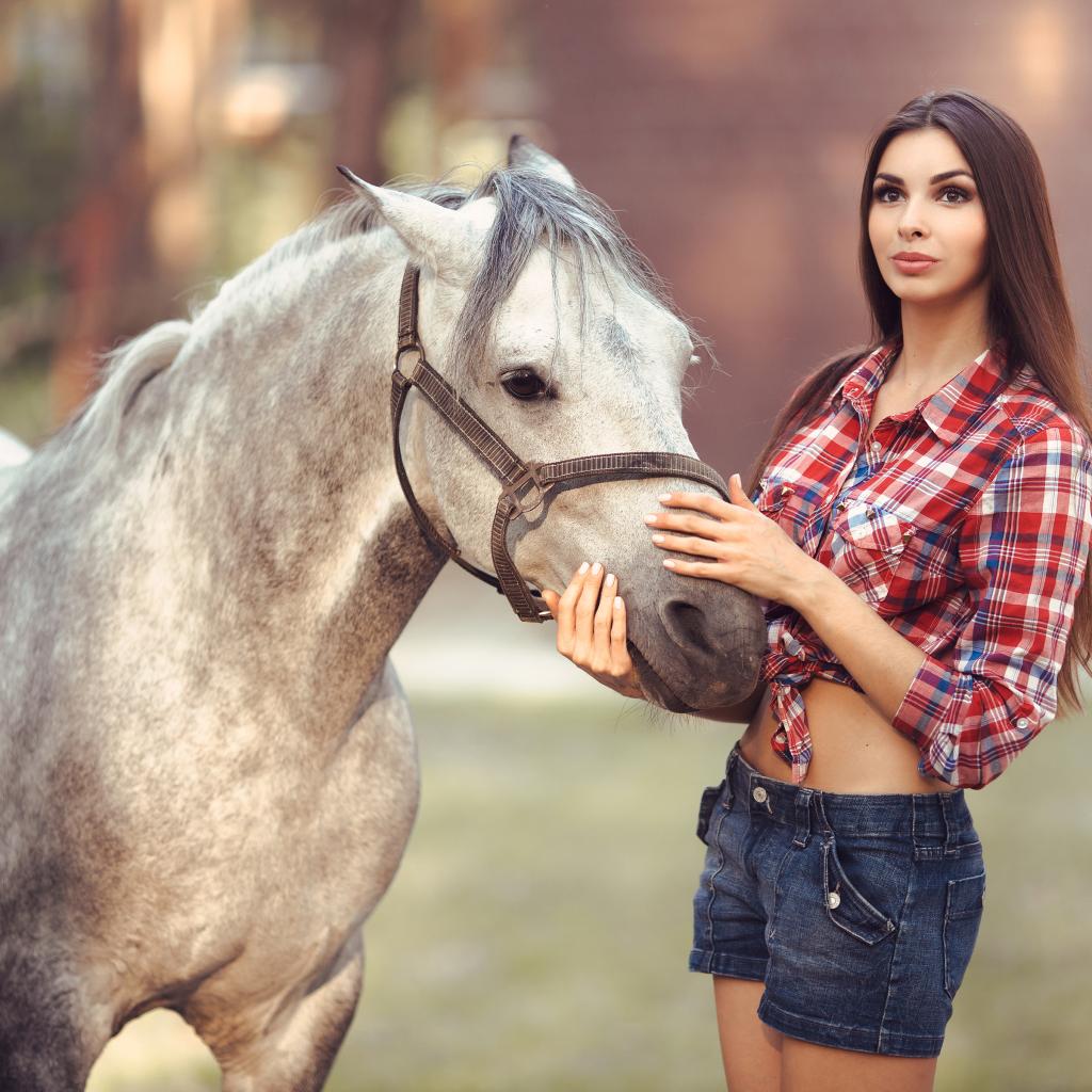 Wallpaper Beautiful long-haired brown-haired with a horse