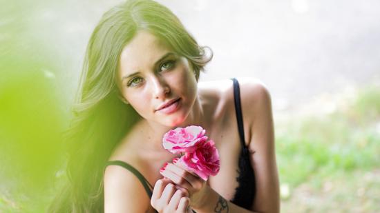 Wallpaper Beautiful girl with three red roses