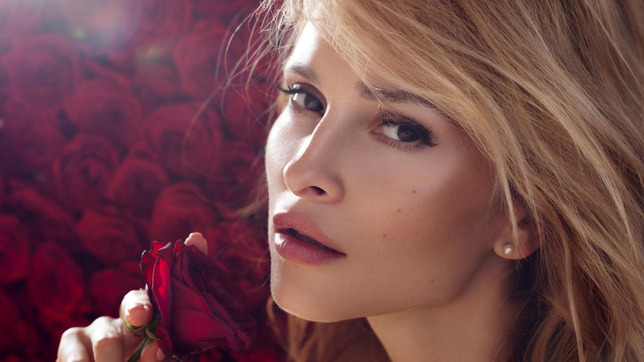 Wallpaper Beautiful blonde girl with a red rose in her hand