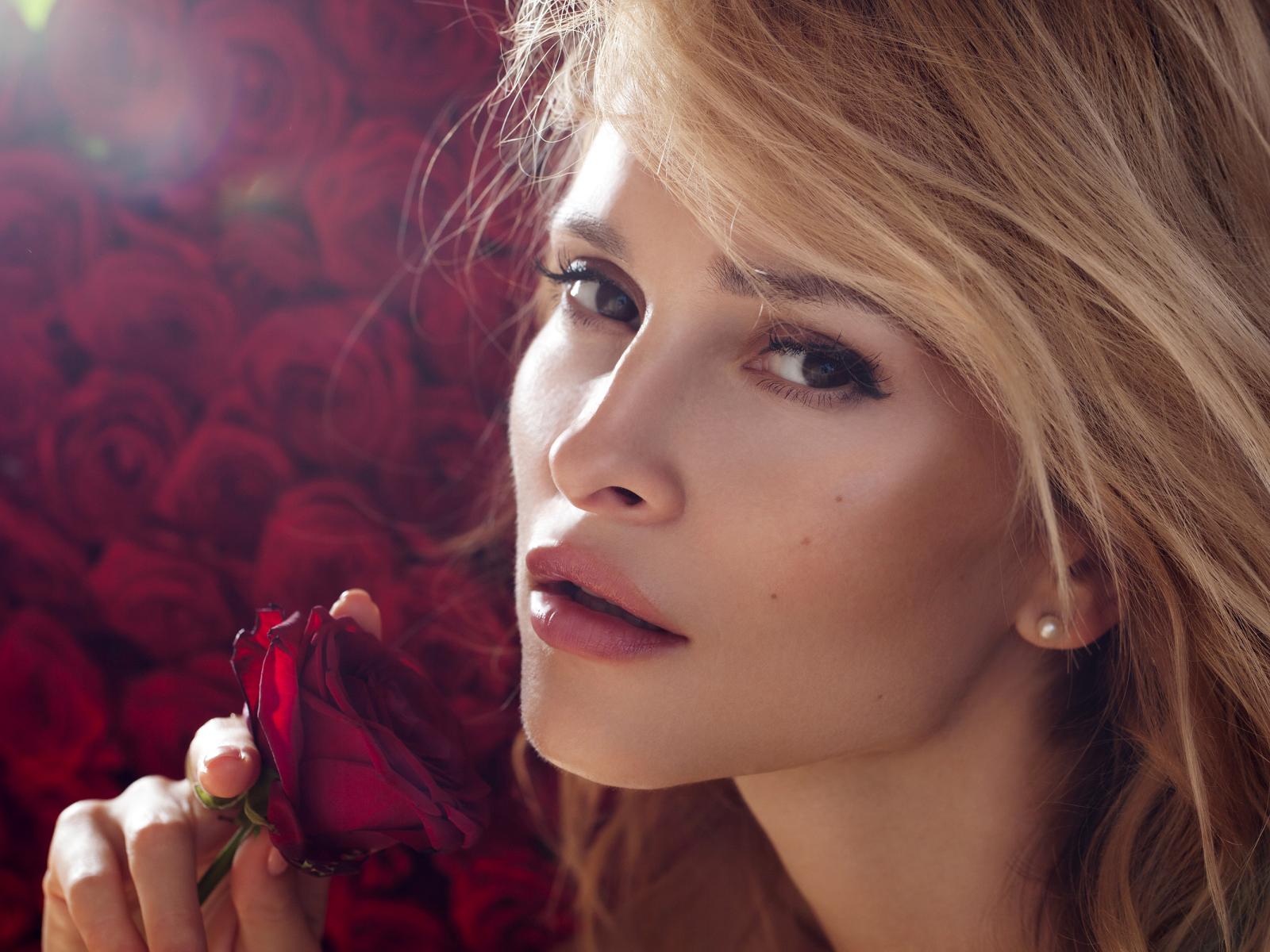 Wallpaper Beautiful blonde girl with a red rose in her hand