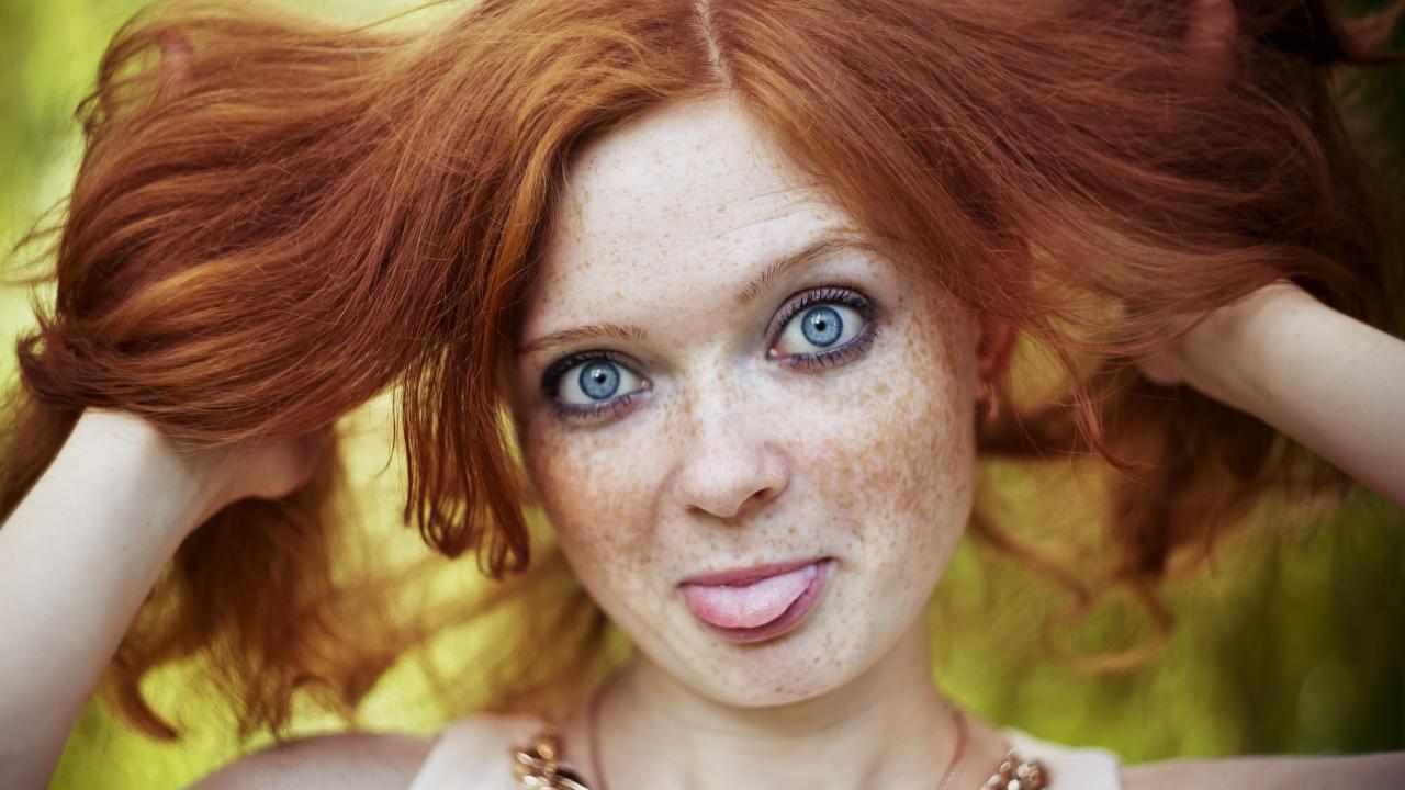 Wallpaper Red-haired girl with freckles on her face