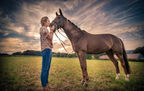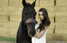 Wallpaper Beautiful girl kisses a horse under a beautiful sky
