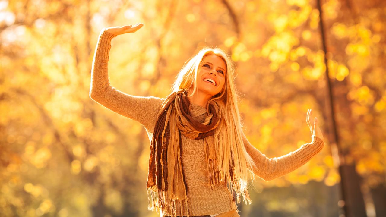 Wallpaper Girl enjoys autumn sun