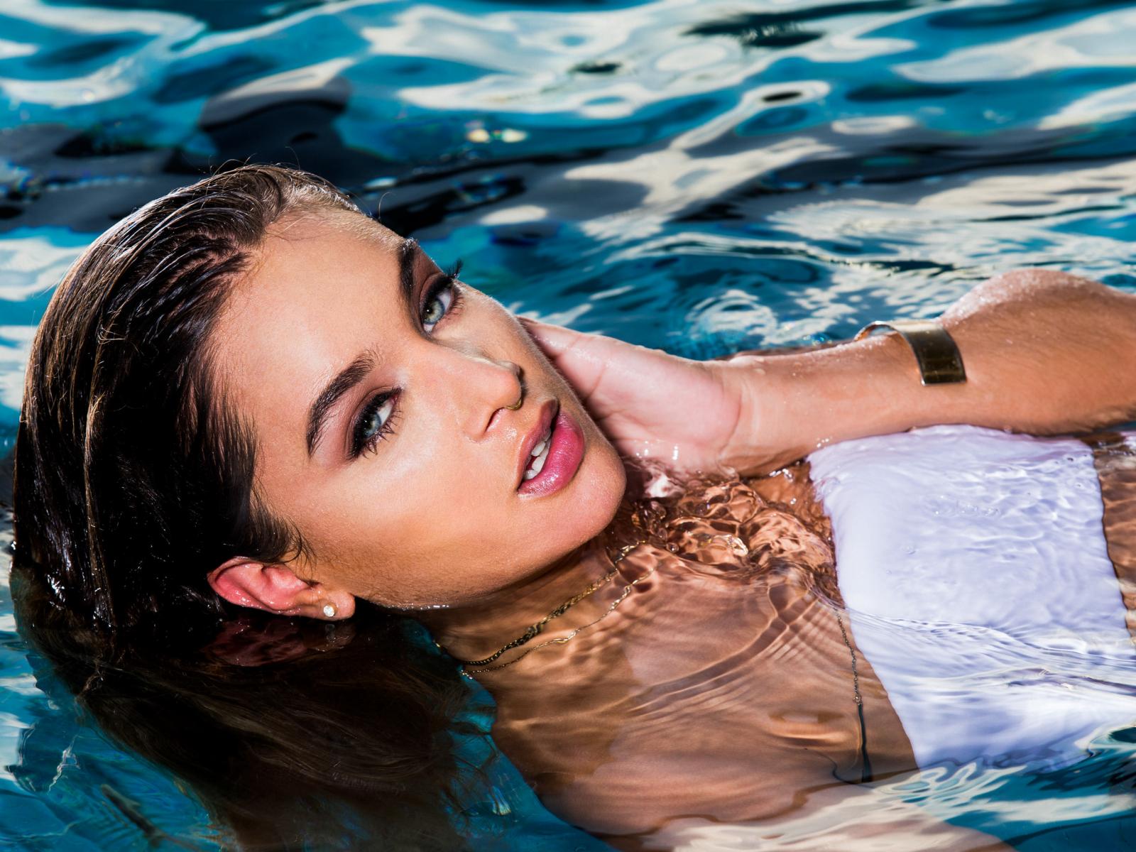 Wallpaper Beautiful young girl bathes in clear water