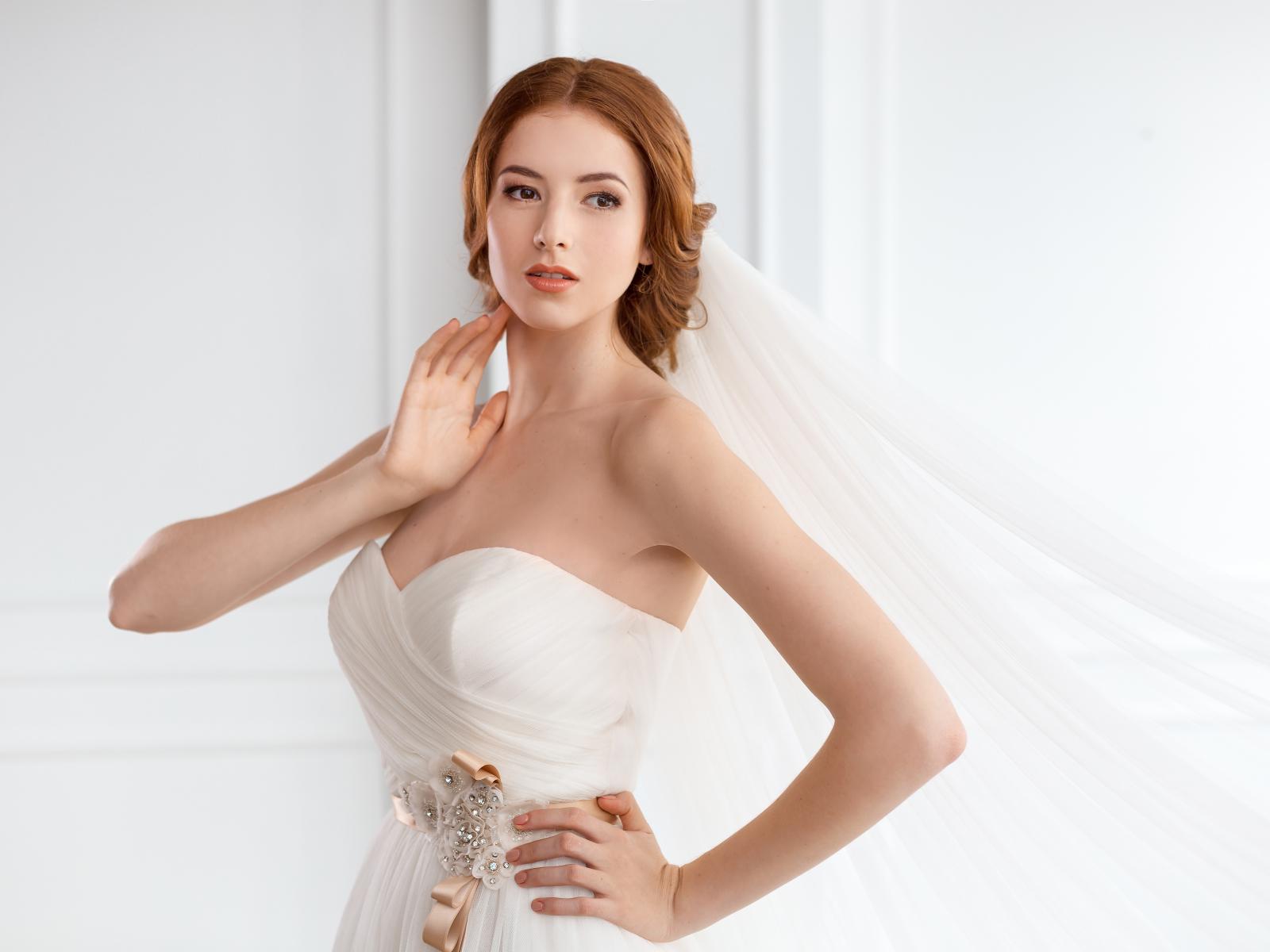 Wallpaper Young tender girl bride in a beautiful wedding dress
