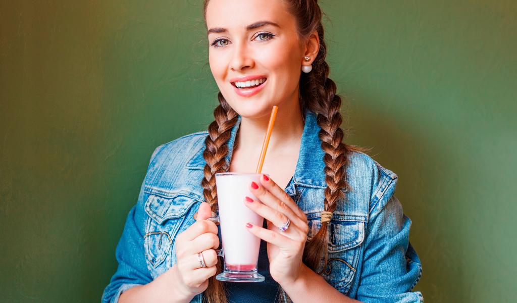 » Wallpaper Smiling girl with cocktail in hands