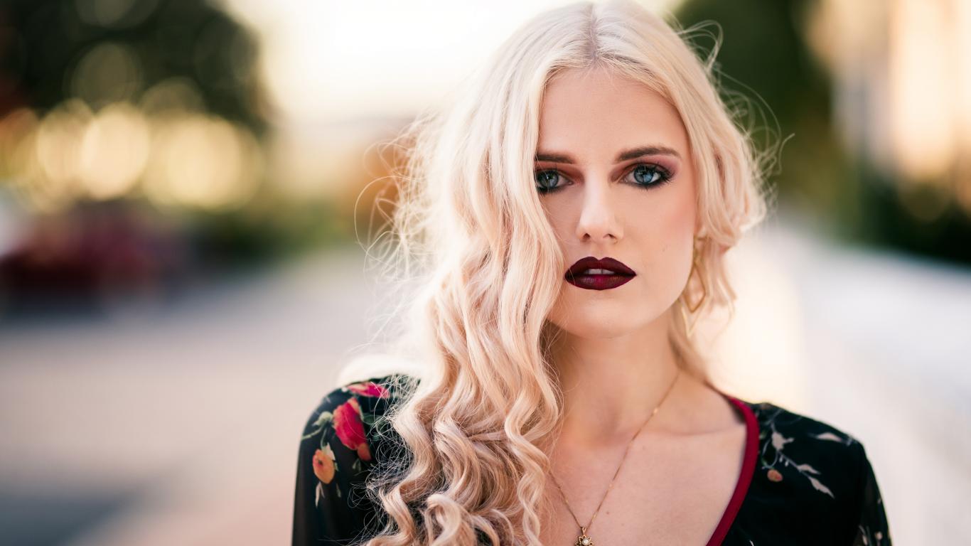 Wallpaper Beautiful blue-eyed blonde with red lips