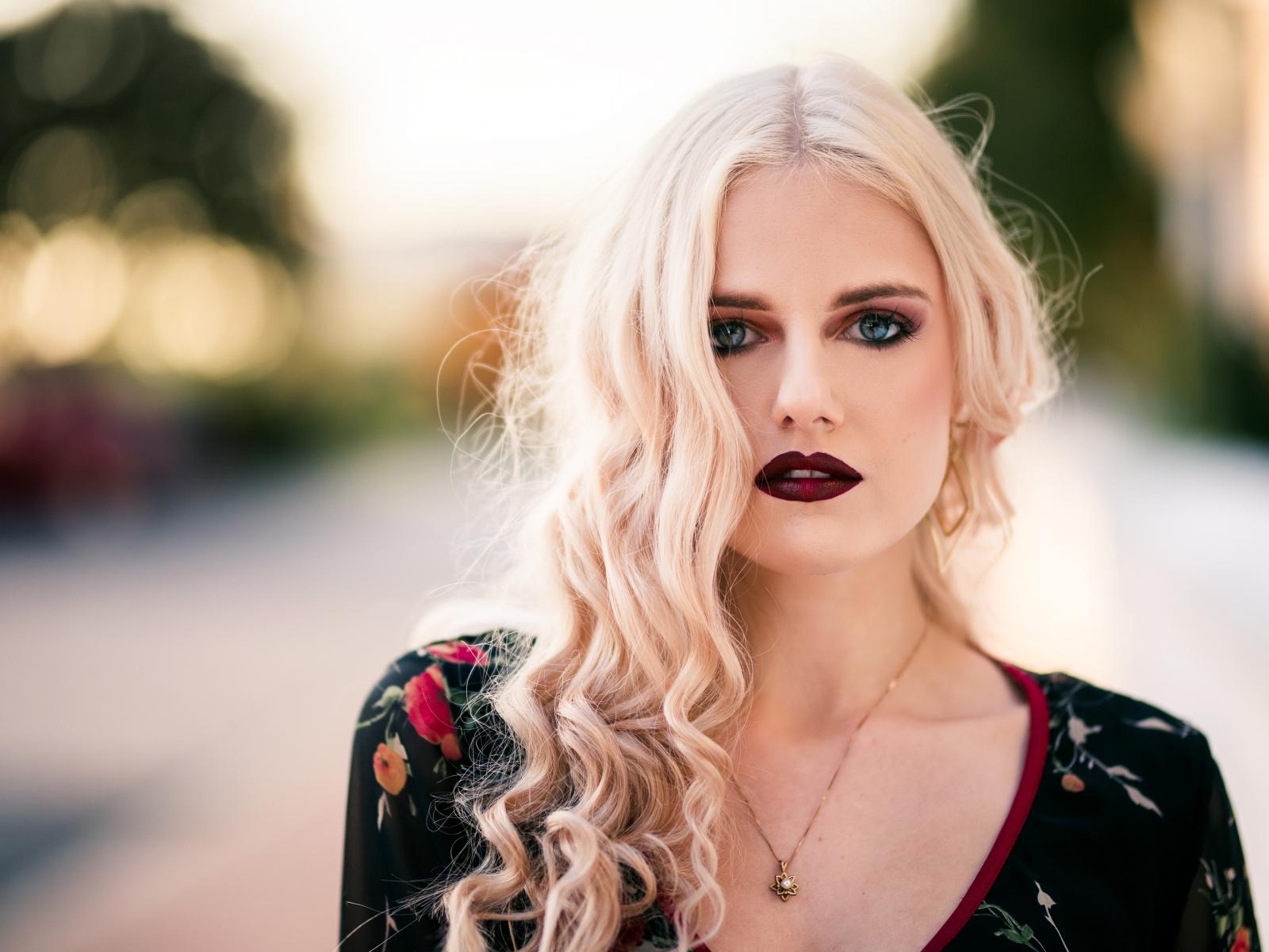 » Wallpaper Beautiful blonde girl with red lips