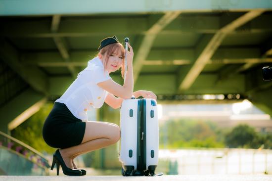 Wallpaper Asian girl stewardess with a suitcase