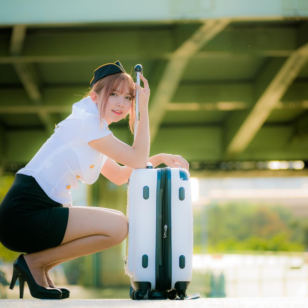 Wallpaper Asian girl stewardess with a suitcase