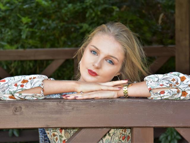 Wallpaper Beautiful blue-eyed girl with a clock on her hand