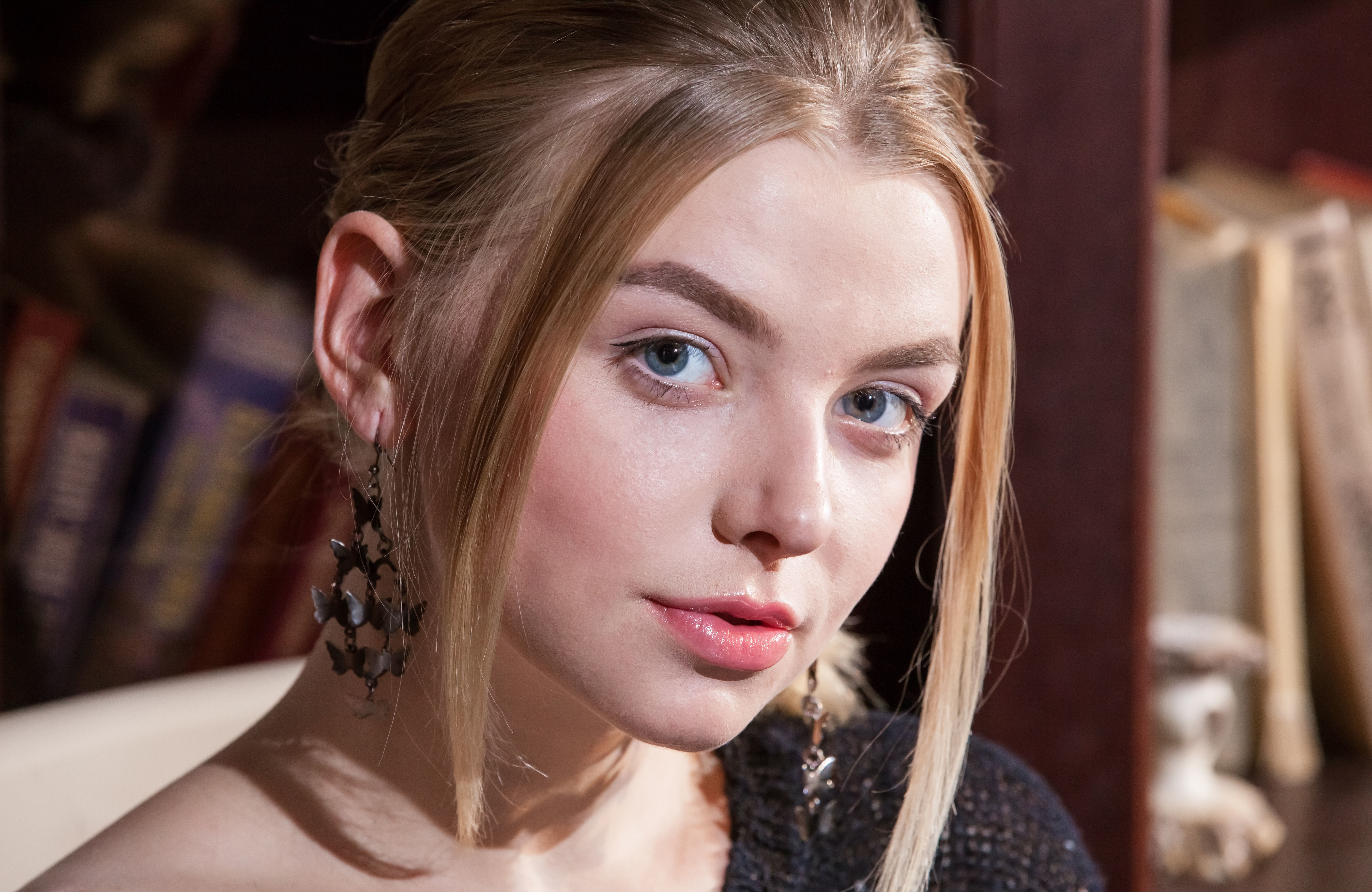 Wallpaper Beautiful blonde girl with blue eyes in a sweater
