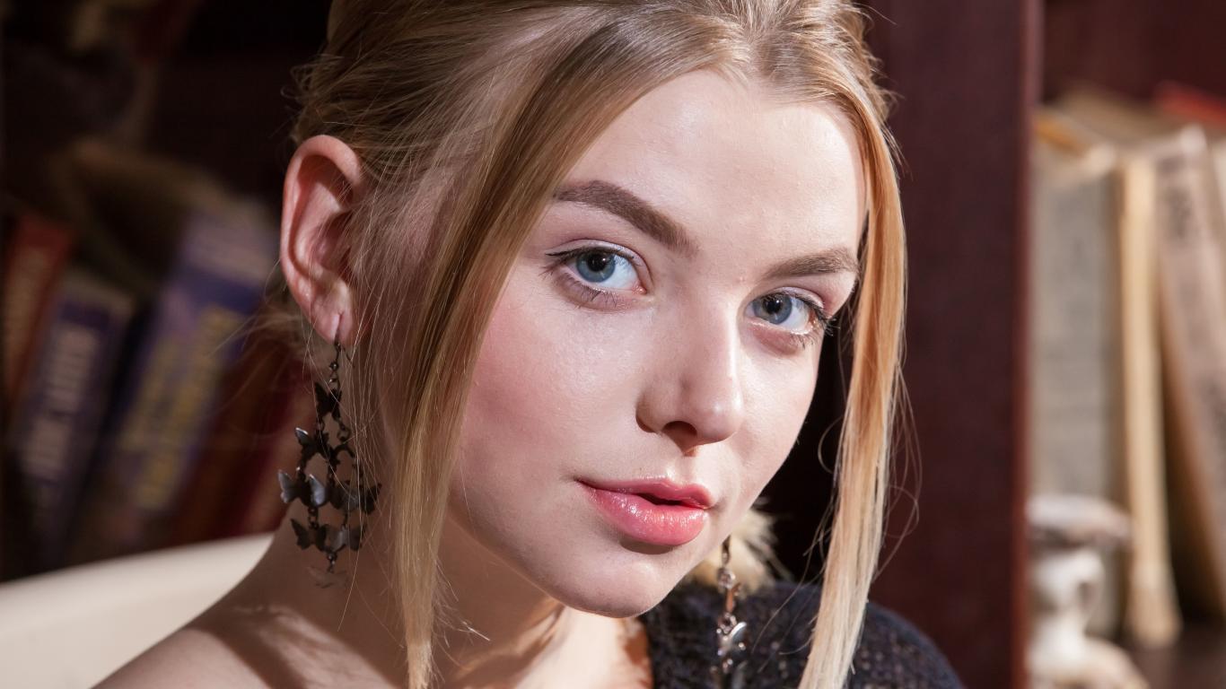Wallpaper Beautiful blonde girl with blue eyes in a sweater