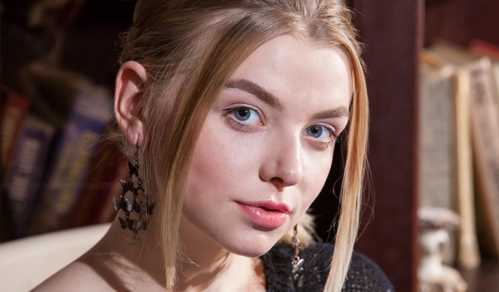 Wallpaper Blonde girl with short hair and blue eyes