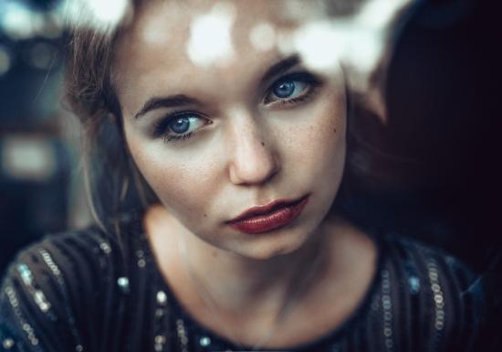 Wallpaper Delicate blue-eyed girl with a sad face