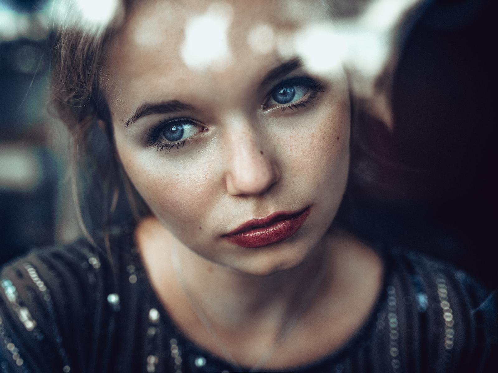 Wallpaper Delicate blue-eyed girl with a sad face