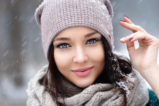 Wallpaper Nice blue-eyed brunette in a warm hat in winter
