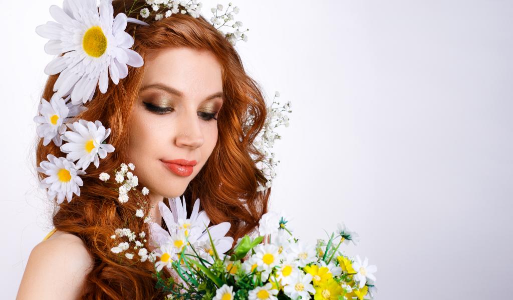 Wallpaper Beautiful red-haired girl with flowers in her hair