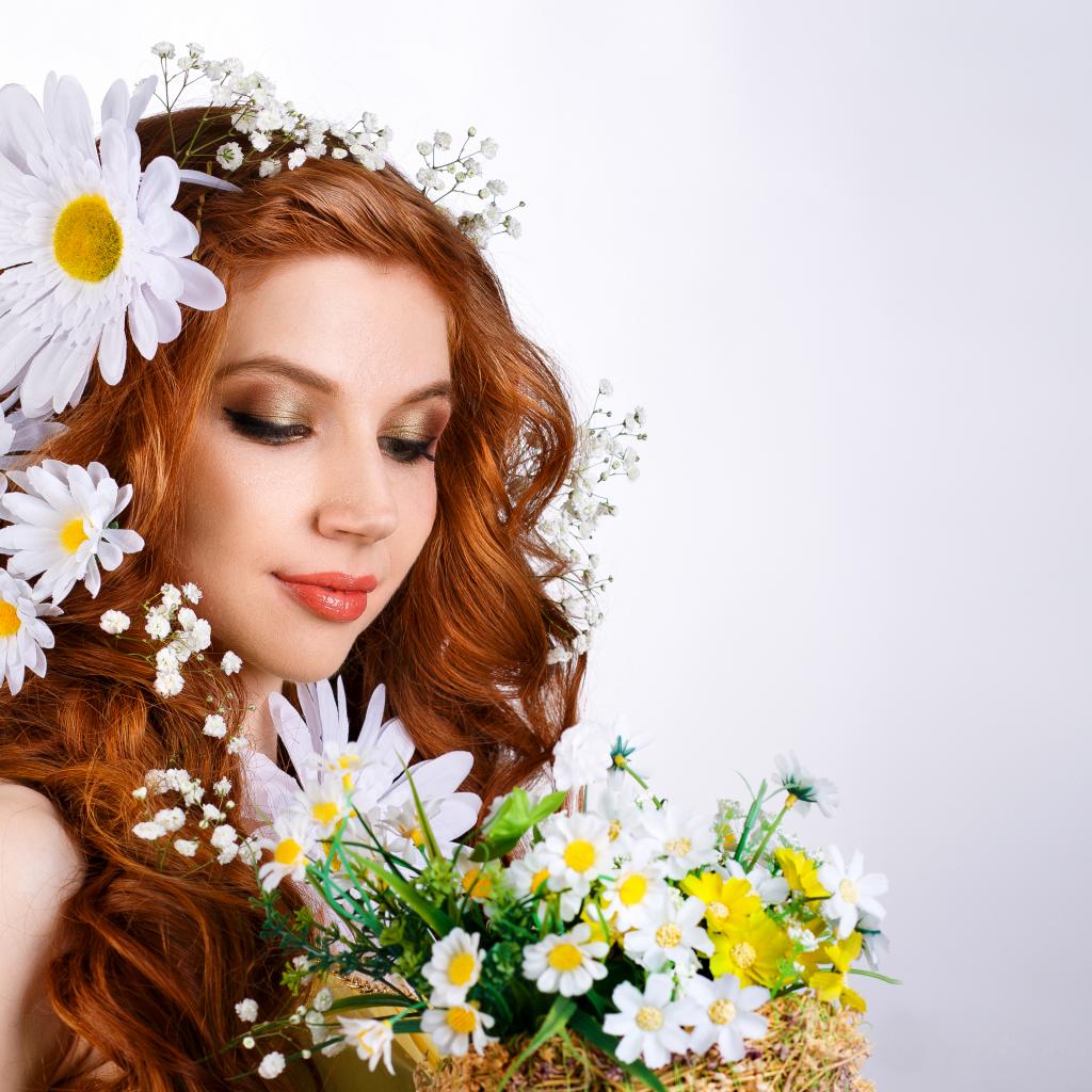 Wallpaper Beautiful red-haired girl with flowers in her hair
