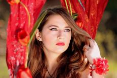 Wallpaper Delicate brown-haired woman with bouquets of tulips in her hair