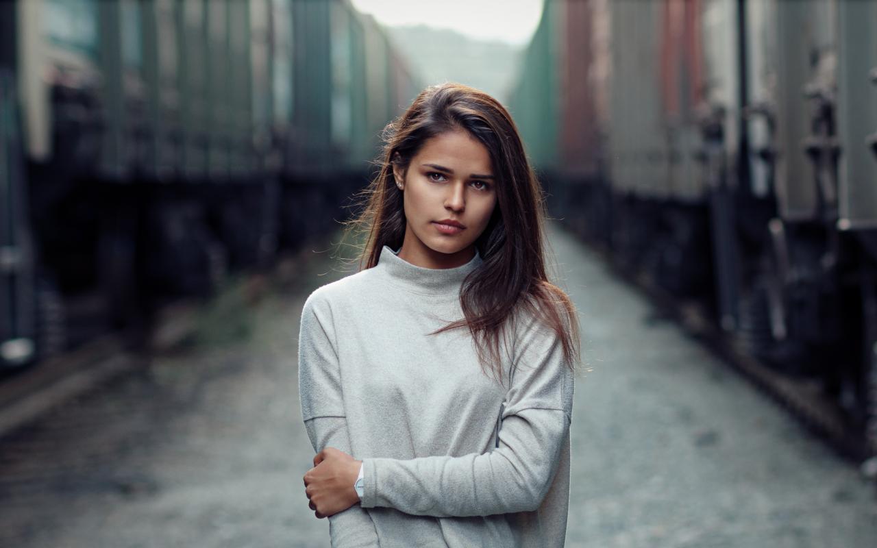 Wallpaper Sad brown-haired woman with brown eyes