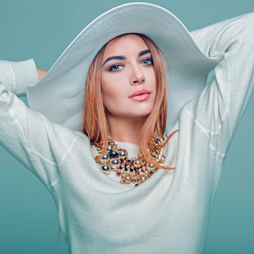 Wallpaper Beautiful blue-eyed girl in a big white hat