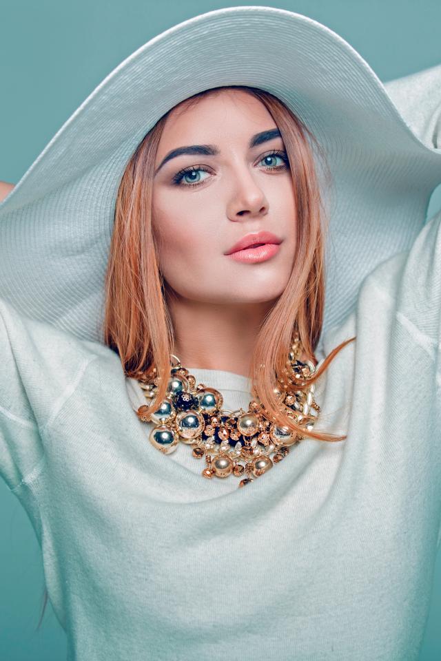 Wallpaper Beautiful blue-eyed girl in a big white hat