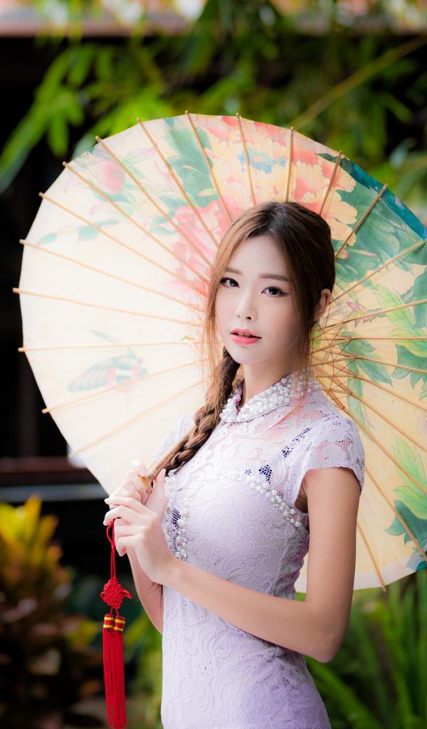 Wallpaper Beautiful asian girl in white dress with umbrella