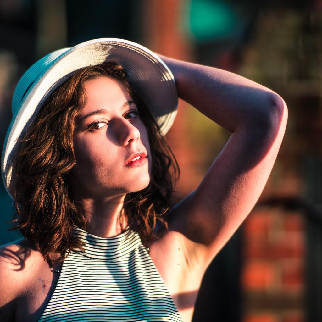 Wallpaper Beautiful young girl in a white hat in the sunlight