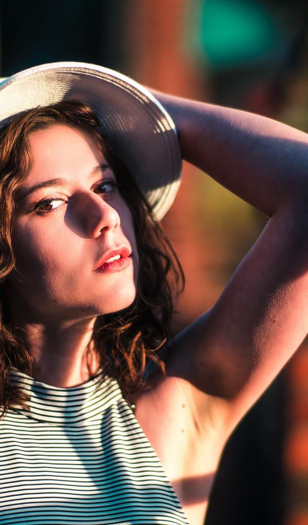 Wallpaper Beautiful young girl in a white hat in the sunlight