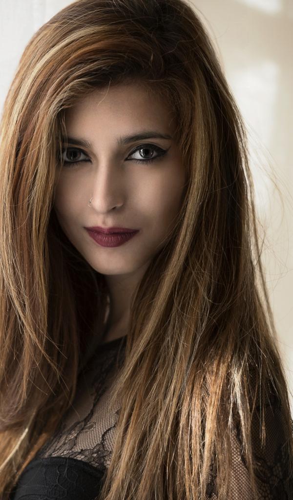 Wallpaper Beautiful girl with long hair and pierced nose