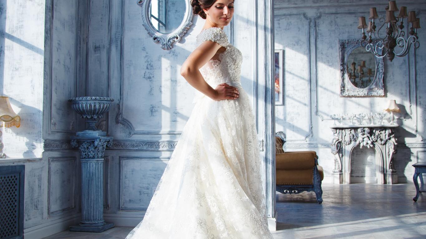 Wallpaper Beautiful young girl in a chic white wedding dress