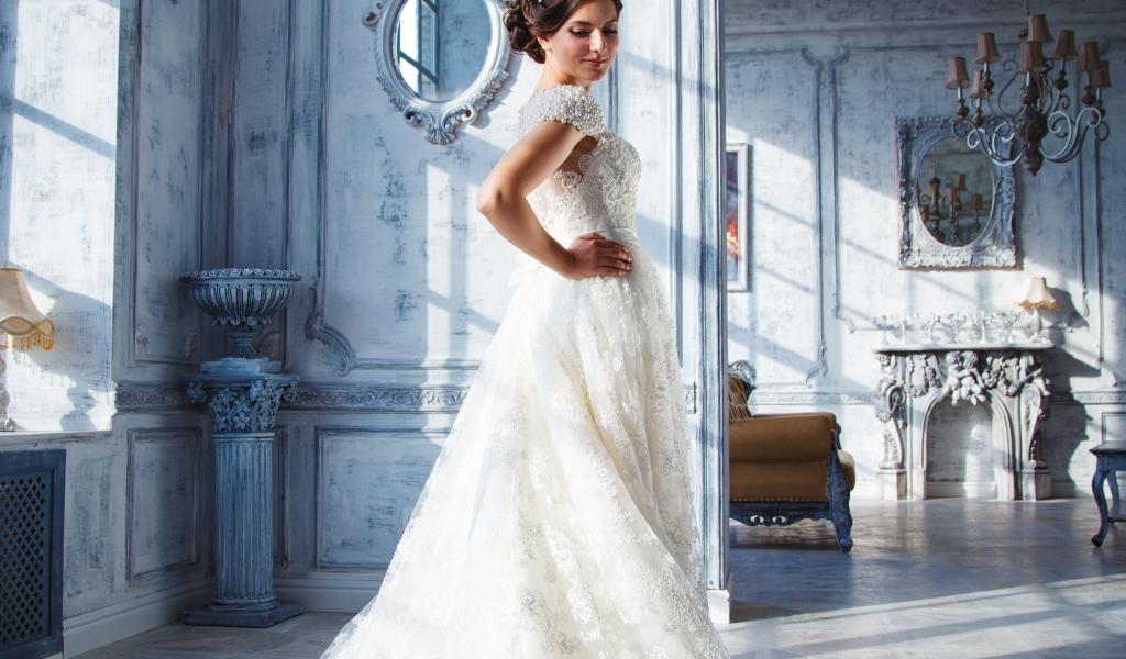 Wallpaper Beautiful young girl in a chic white wedding dress