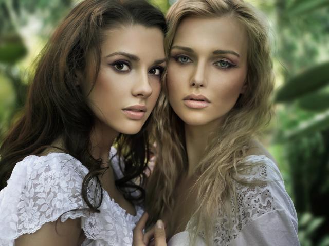 Wallpaper Two beautiful girls in white dresses