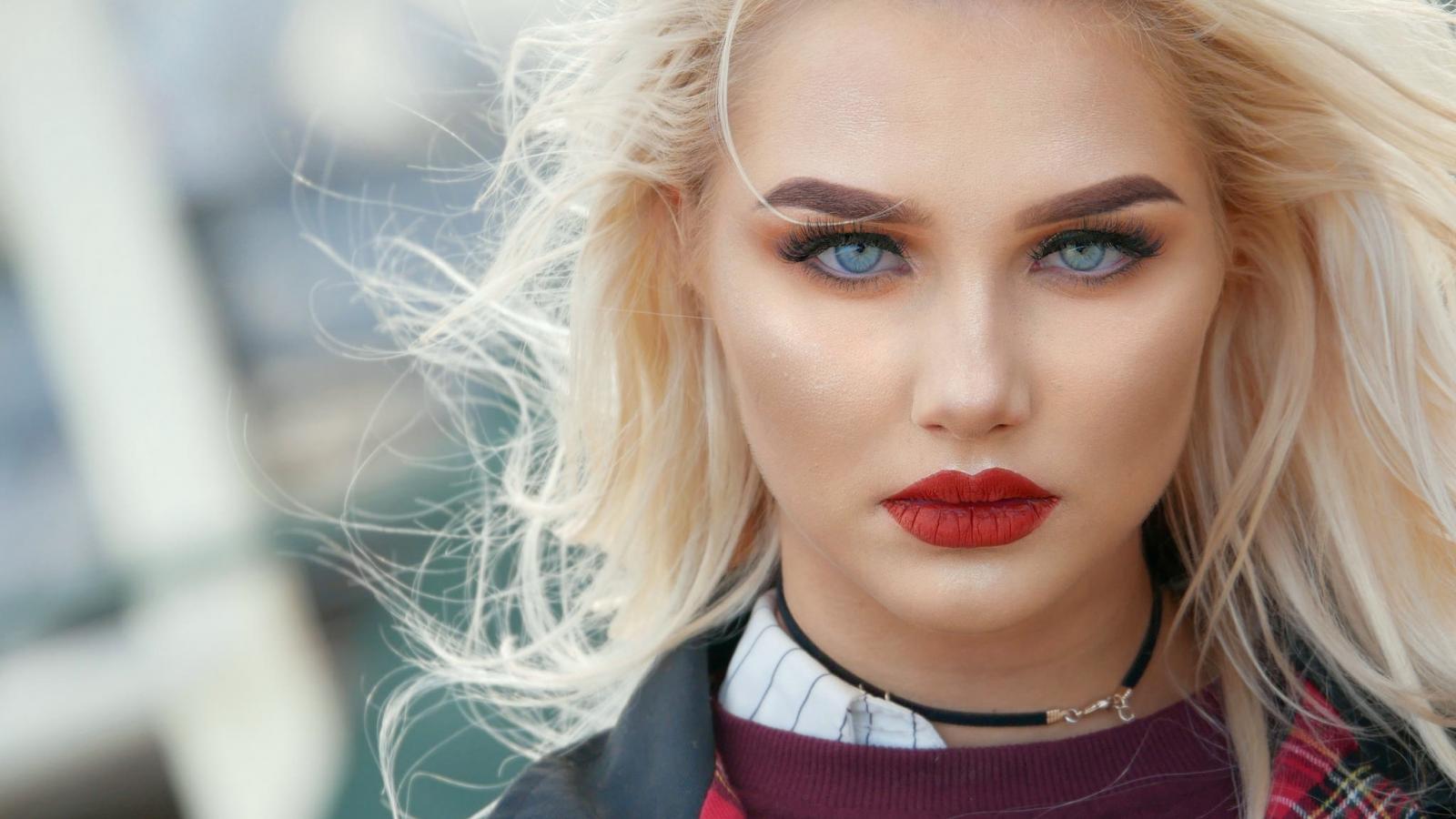 Wallpaper Effective blue-eyed blonde with bright red lips