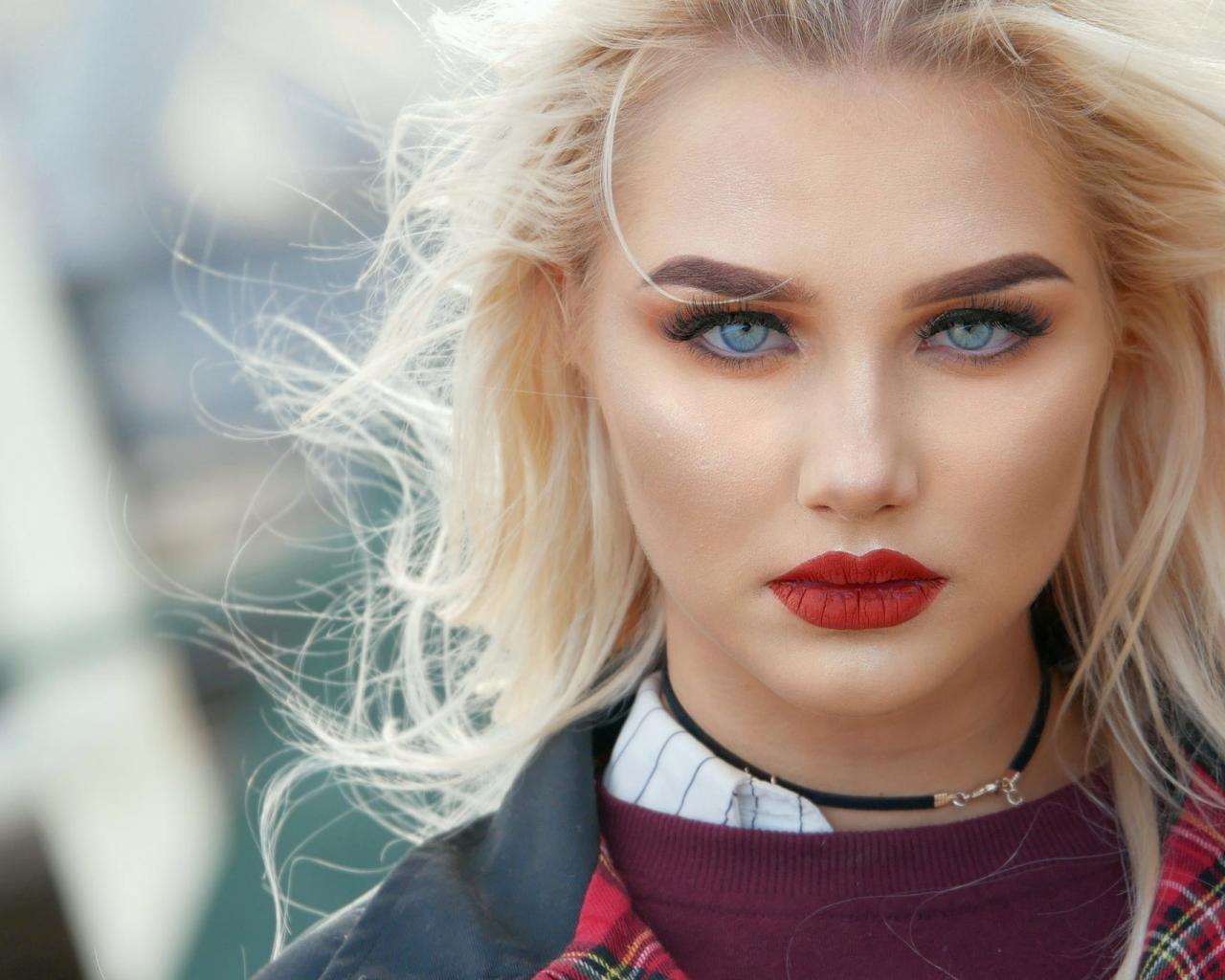 Wallpaper Effective blue-eyed blonde with bright red lips