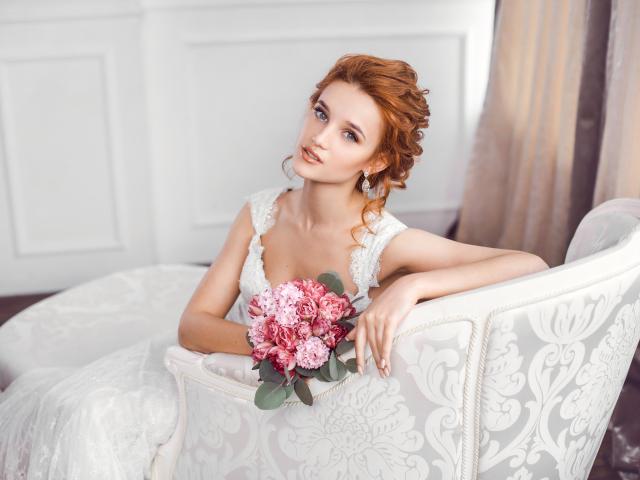 Wallpaper Beautiful red-haired girl bride with a pink bouquet