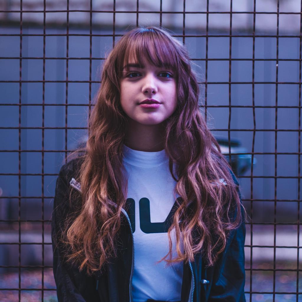 Wallpaper Young girl on the background of an iron grid
