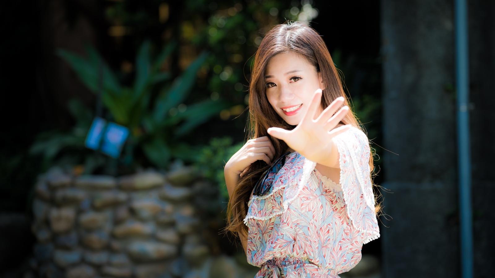 Wallpaper Asian girl in a beautiful red dress near a rose bush