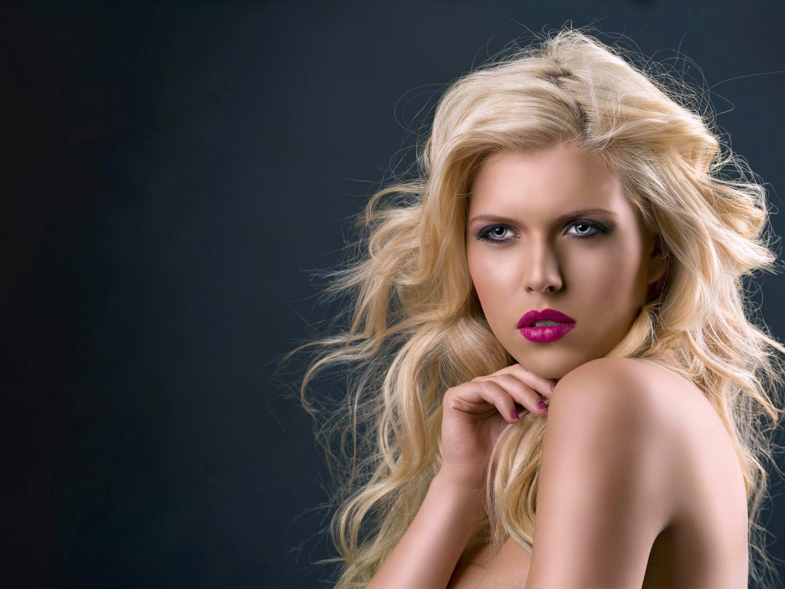 Wallpaper Young beautiful blue-eyed blonde on a gray background
