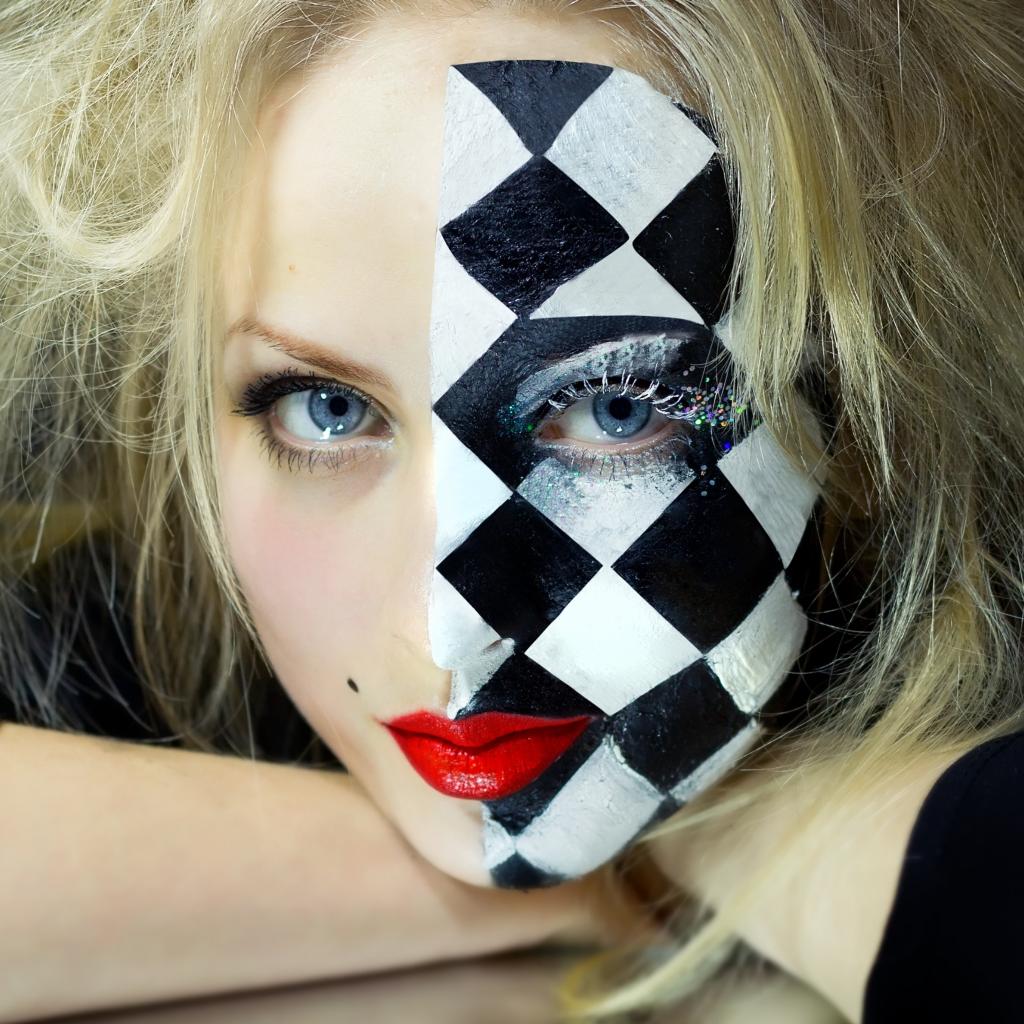 Wallpaper Blue-eyed blonde with unusual make-up on her face