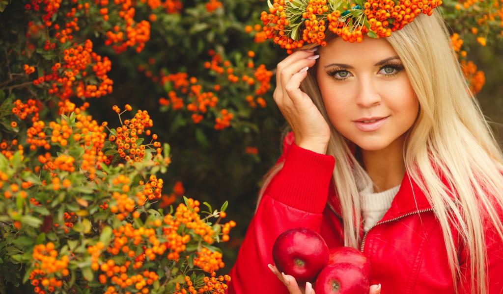 Wallpaper Beautiful blonde with a wreath of ashberry on her head