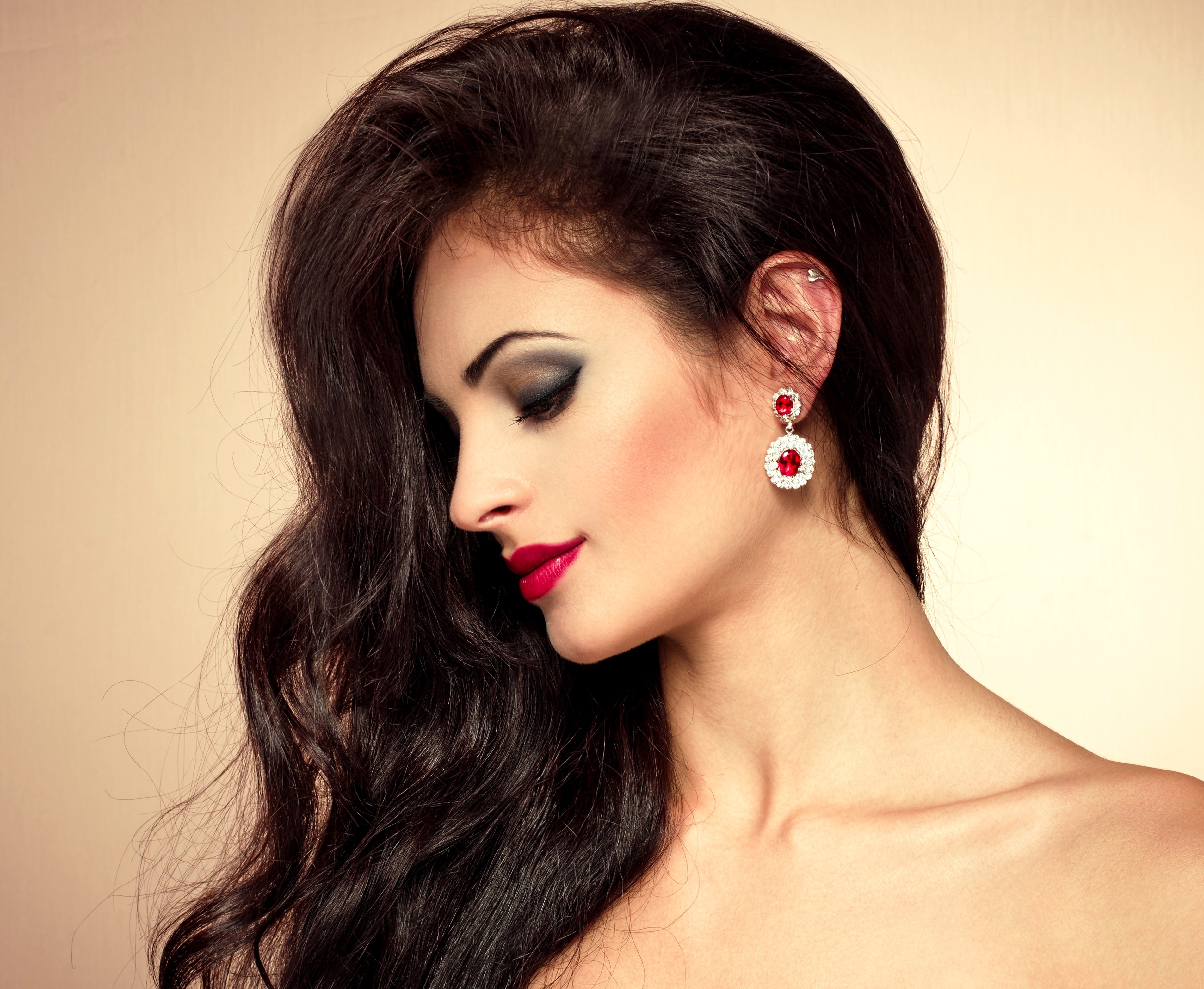 » Wallpaper Beautiful brunette with expensive earrings in the ears