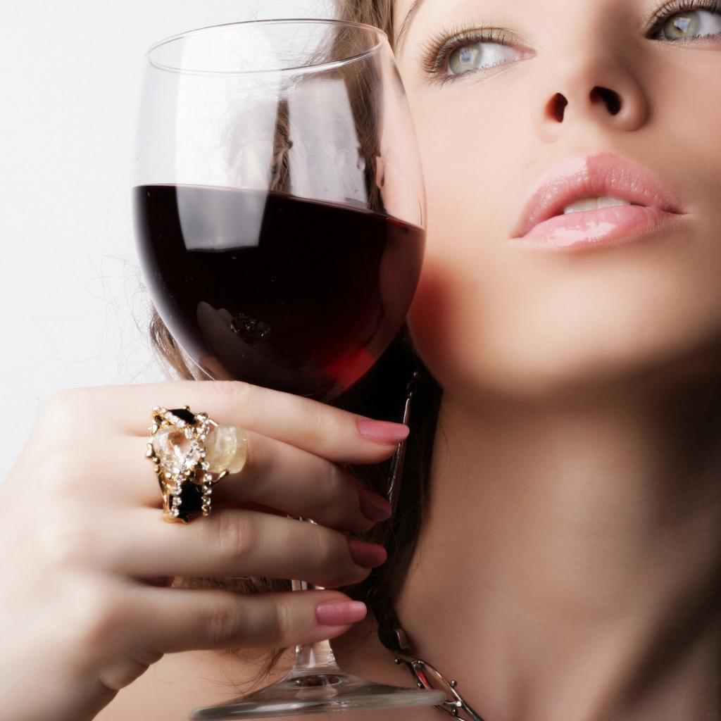 Wallpaper Beautiful blue-eyed girl with a glass of red wine in her hand