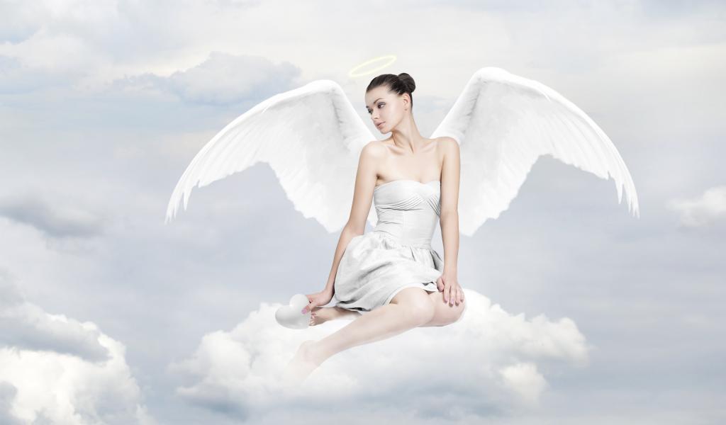 Wallpaper Beautiful girl with angel wings sits on a cloud