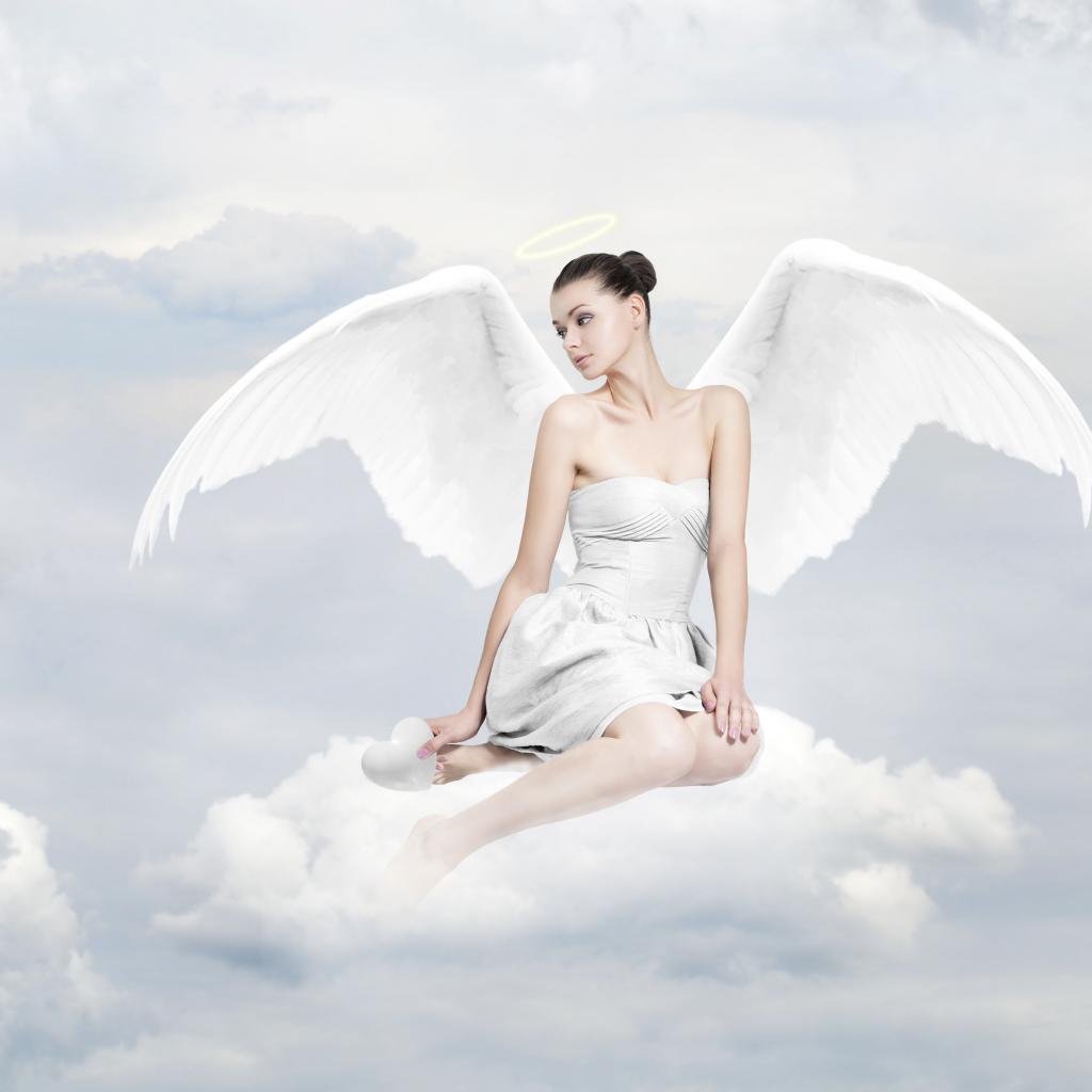 Wallpaper Beautiful girl with angel wings sits on a cloud