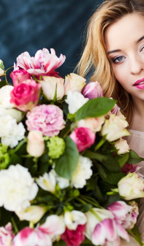 Wallpaper Beautiful gentle girl blonde with a big bouquet