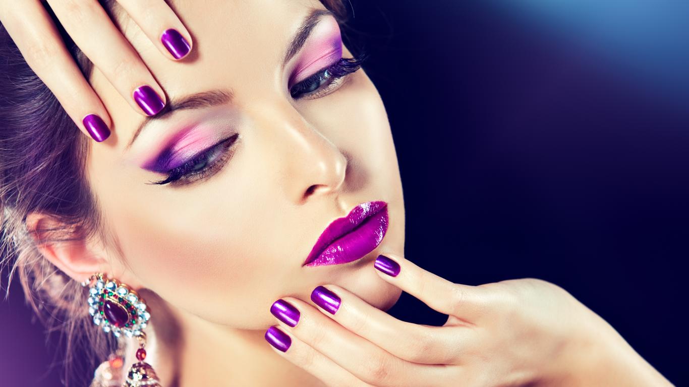 Wallpaper Beautiful brown-haired woman with violet make-up