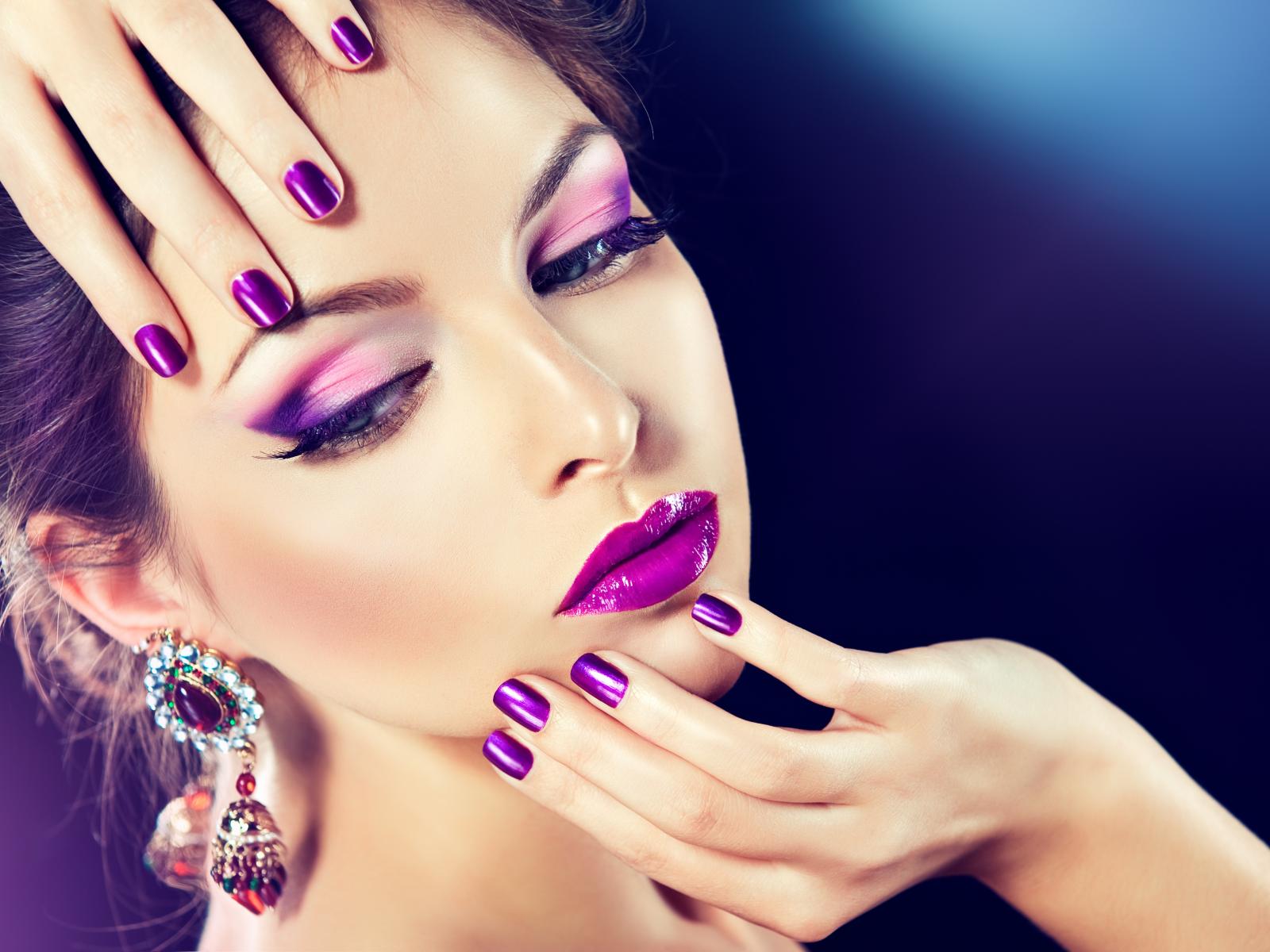 Wallpaper Beautiful brown-haired woman with violet make-up